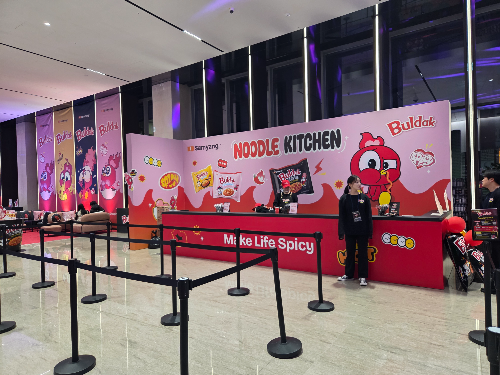 이렇게 불닭으로 꾸며진 시식코너가 있어서